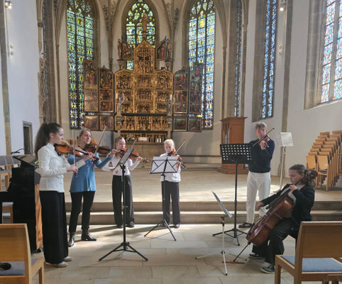Anouk Frank, Ronja Frank, Martha Kibilka, Paul Hengesbach, Malou Frank (Violoncello, Schülerin von Helga Voß)